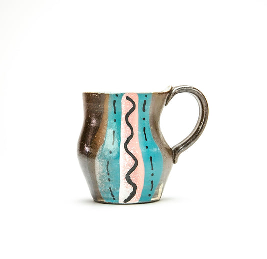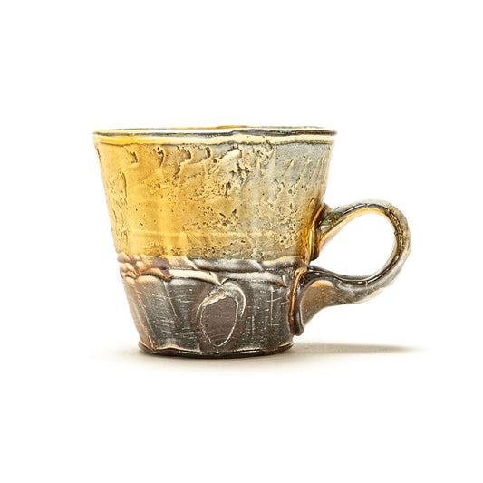 Floral and Lace Dimple Mug with Chartreuse Handle