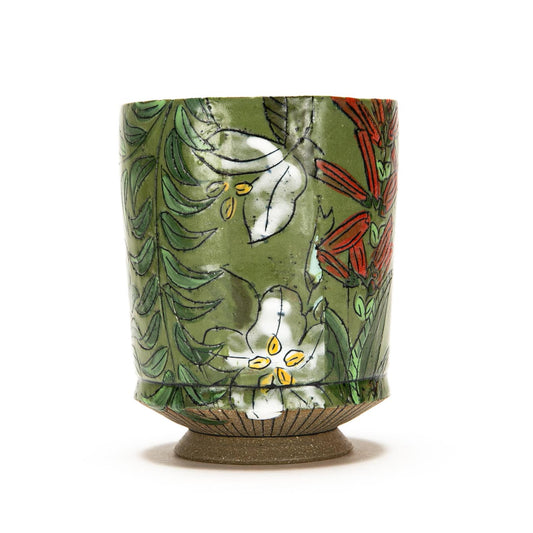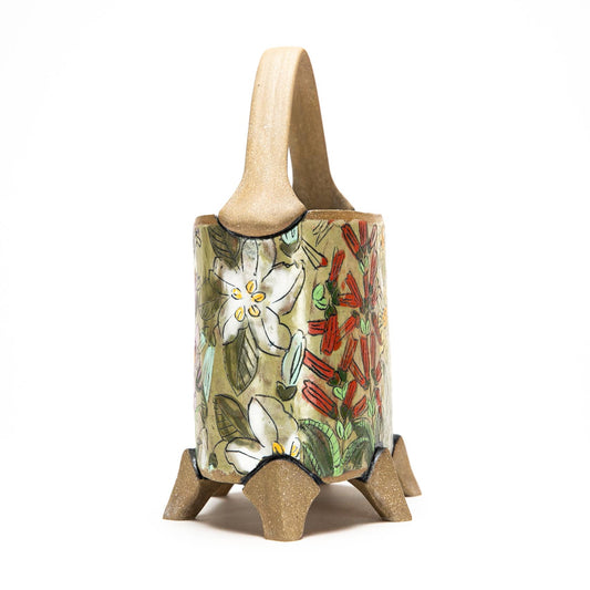 Wheel-thrown vessels are the focus of Draper’s practice. On the surface, Marian explores floral motifs and patterns inspired by rich botanicals, nature, and the Arts and Crafts movement. Her forms are an exploration of her interests in volume, line, and proportion. Draper works with a stoneware clay and various underglaze applications to create her elegant and ornate wares.