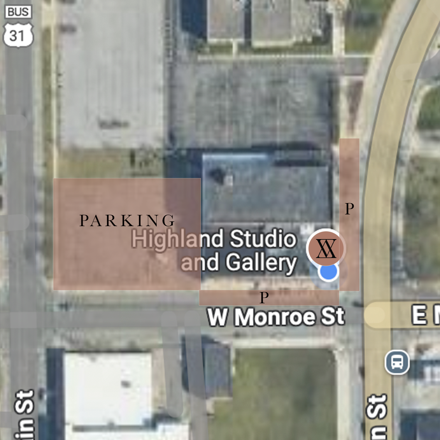 Parking is available In the front (Michigan Ave), side (Monroe St), and the back parking lot off of Monroe St. Additional parking can be found across the street at the post office.