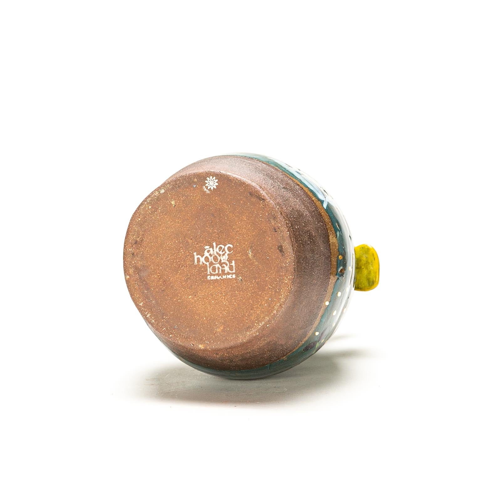 Red stoneware with slip and underglaze and luster. ^5 Oxidation