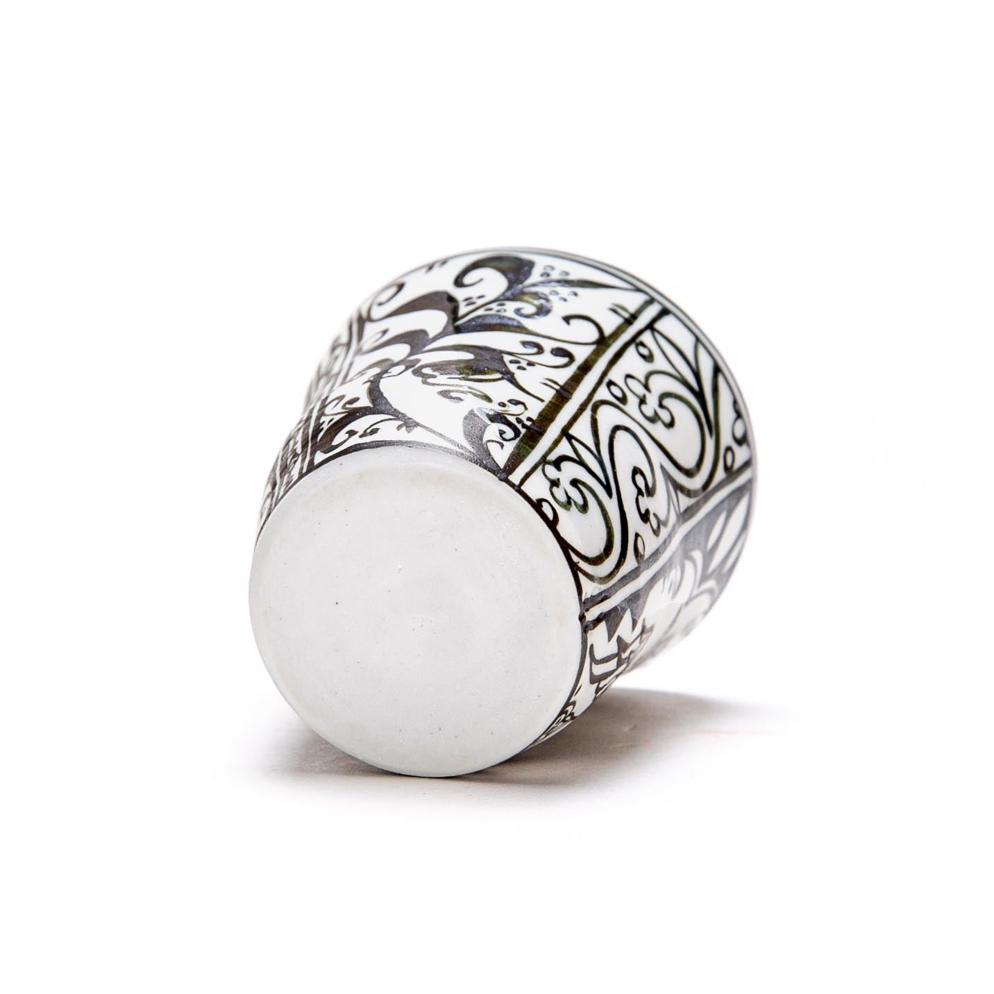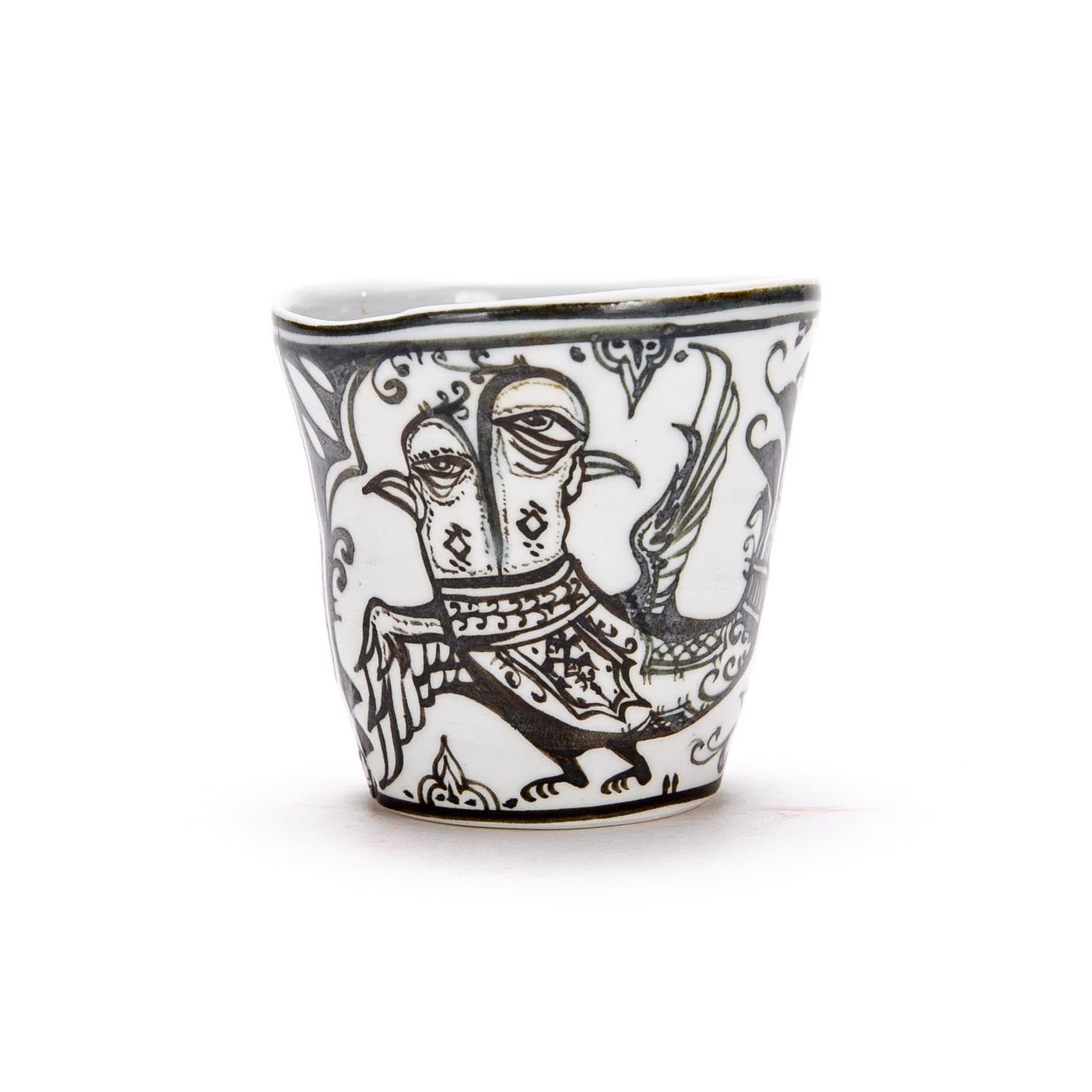 Stoneware with wax resist drawings and oxides. ^10 Reduction