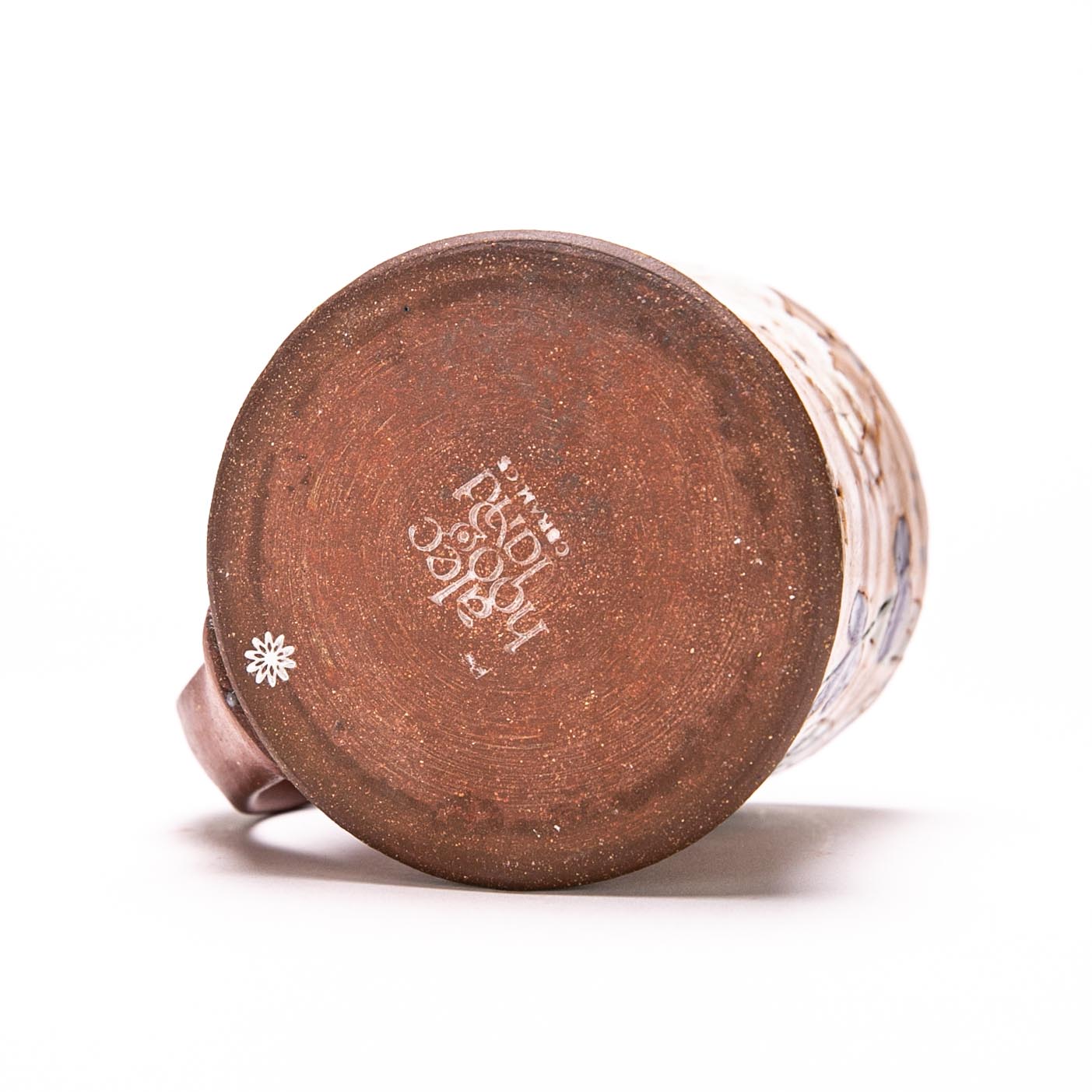 Red stoneware with slip, underglaze, and stamps. ^5 Oxidation