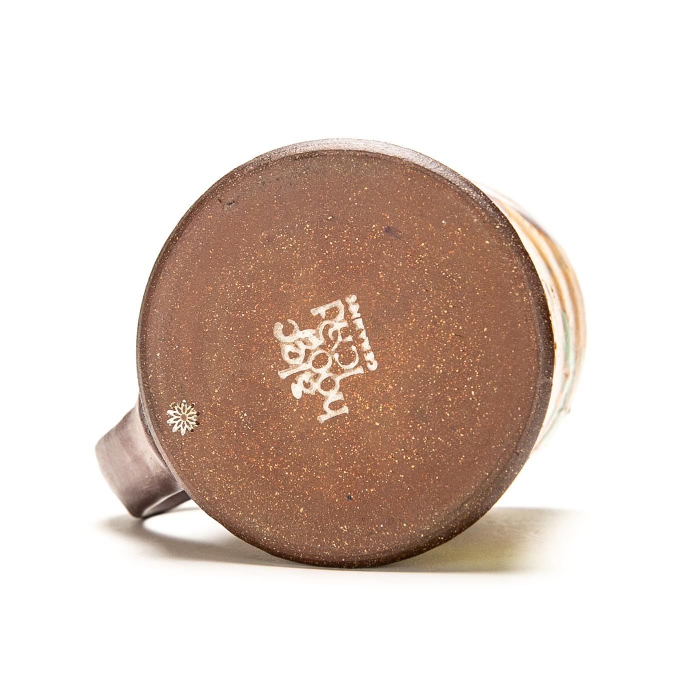 Red stoneware with slip and underglaze. ^5 Oxidation