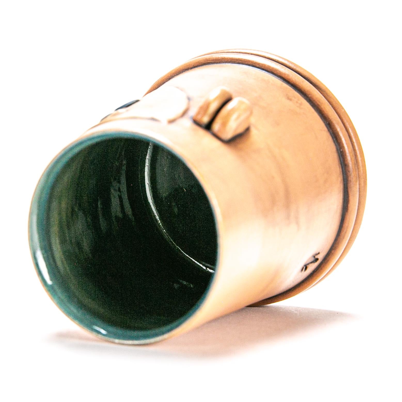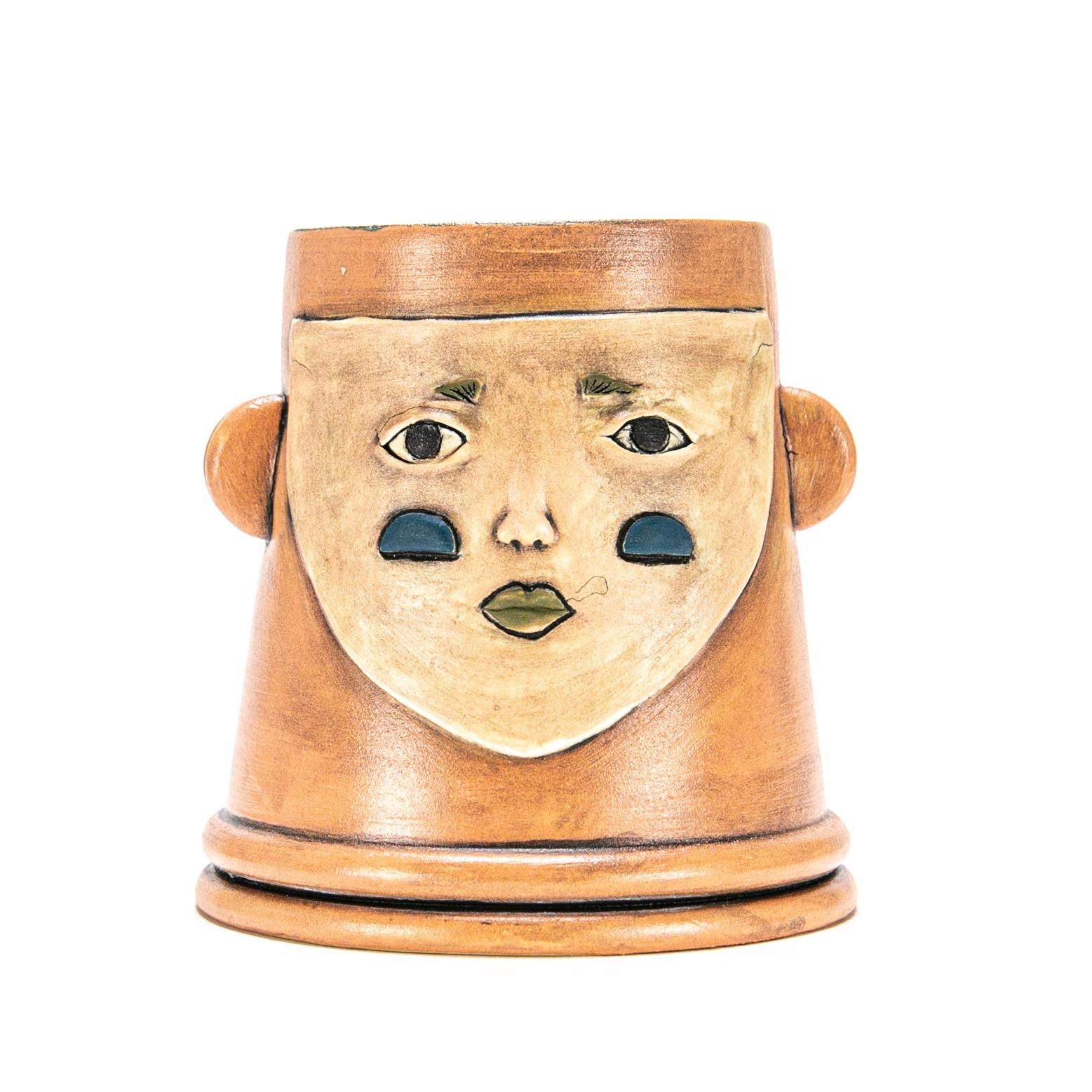 B-mix with sculpted face and underglaze. ^5 Oxidation