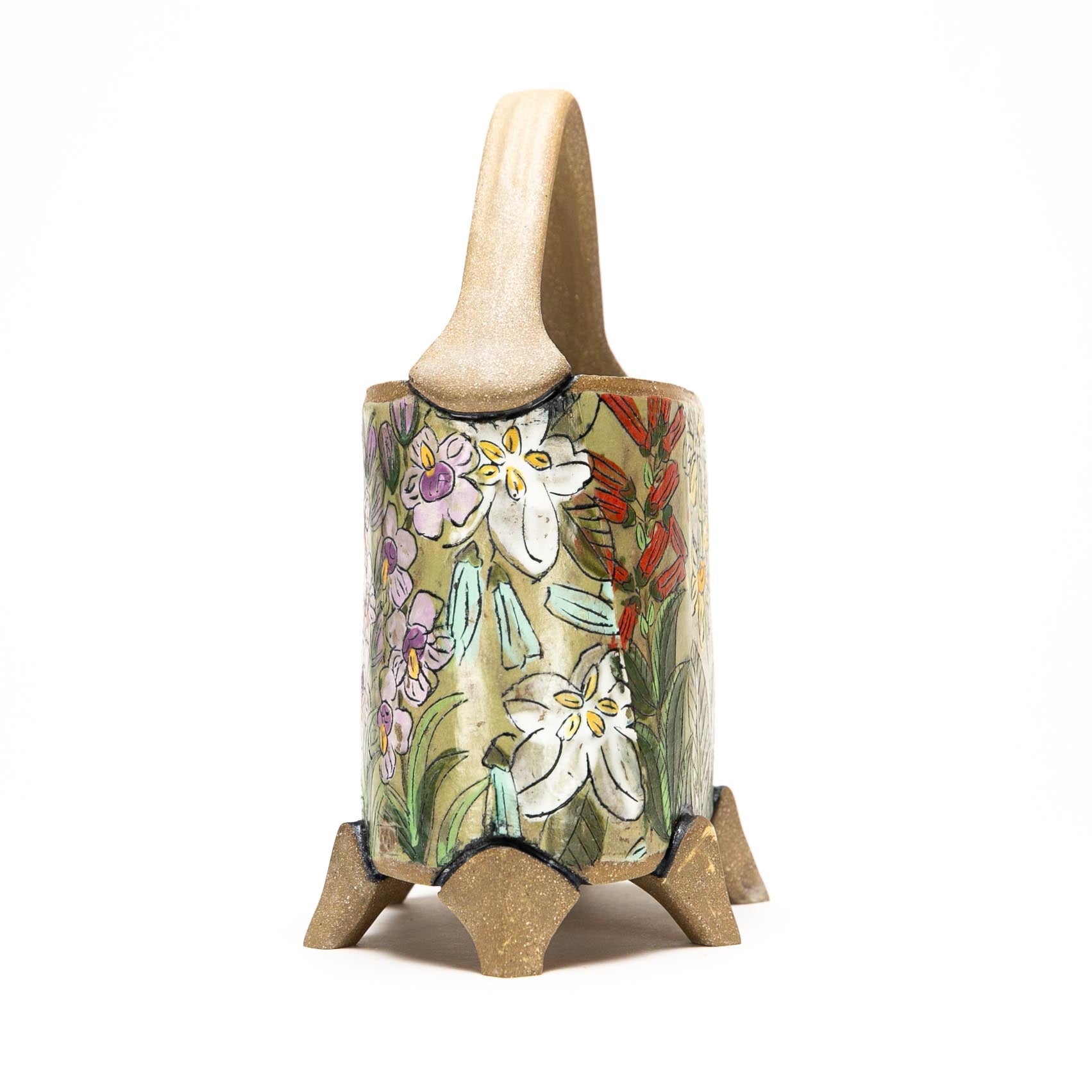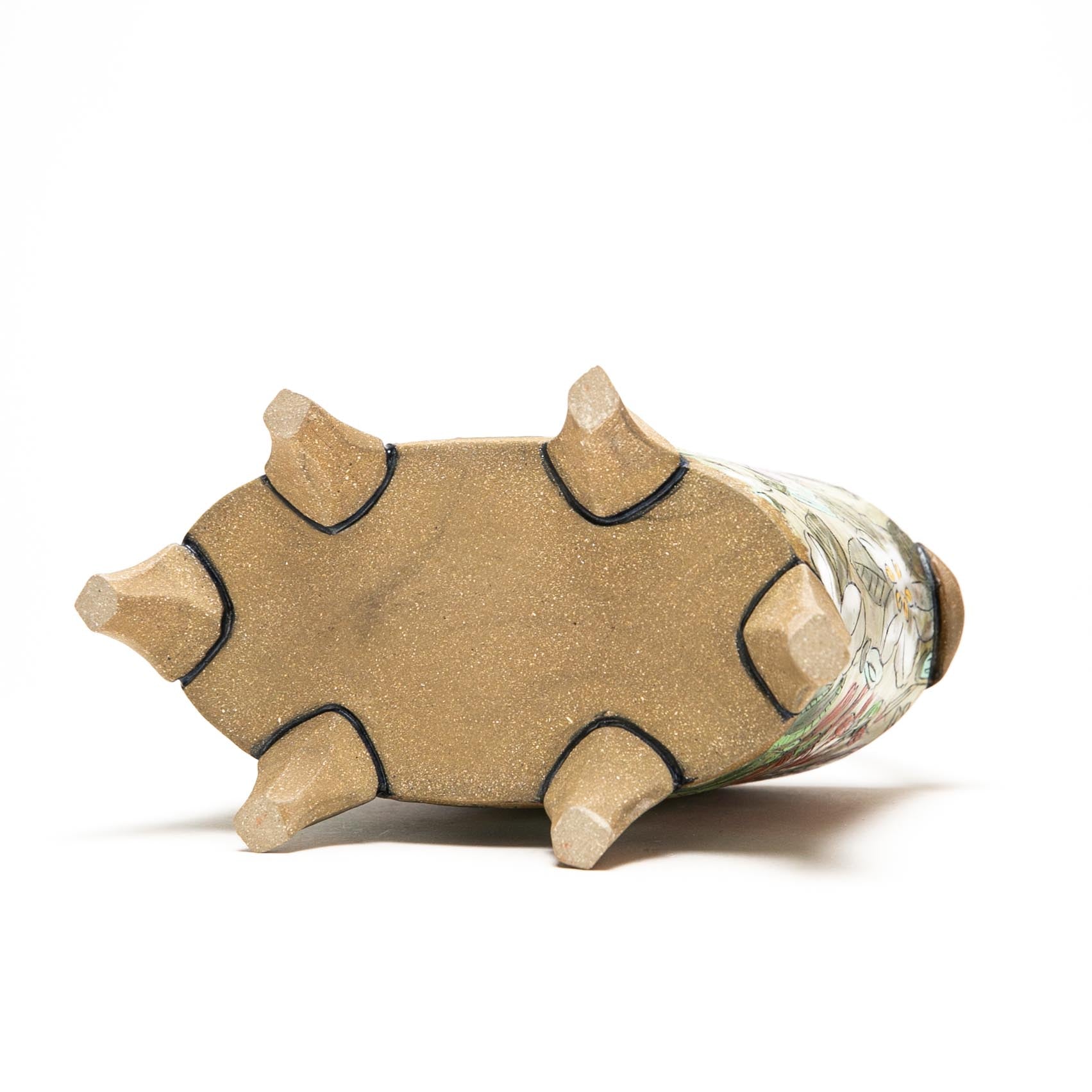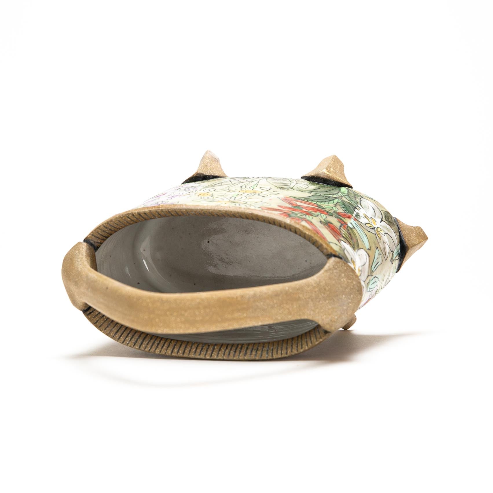 Stoneware. Porcelain slip, underglaze, newsprint transfer, inlay. ^6 Oxidation