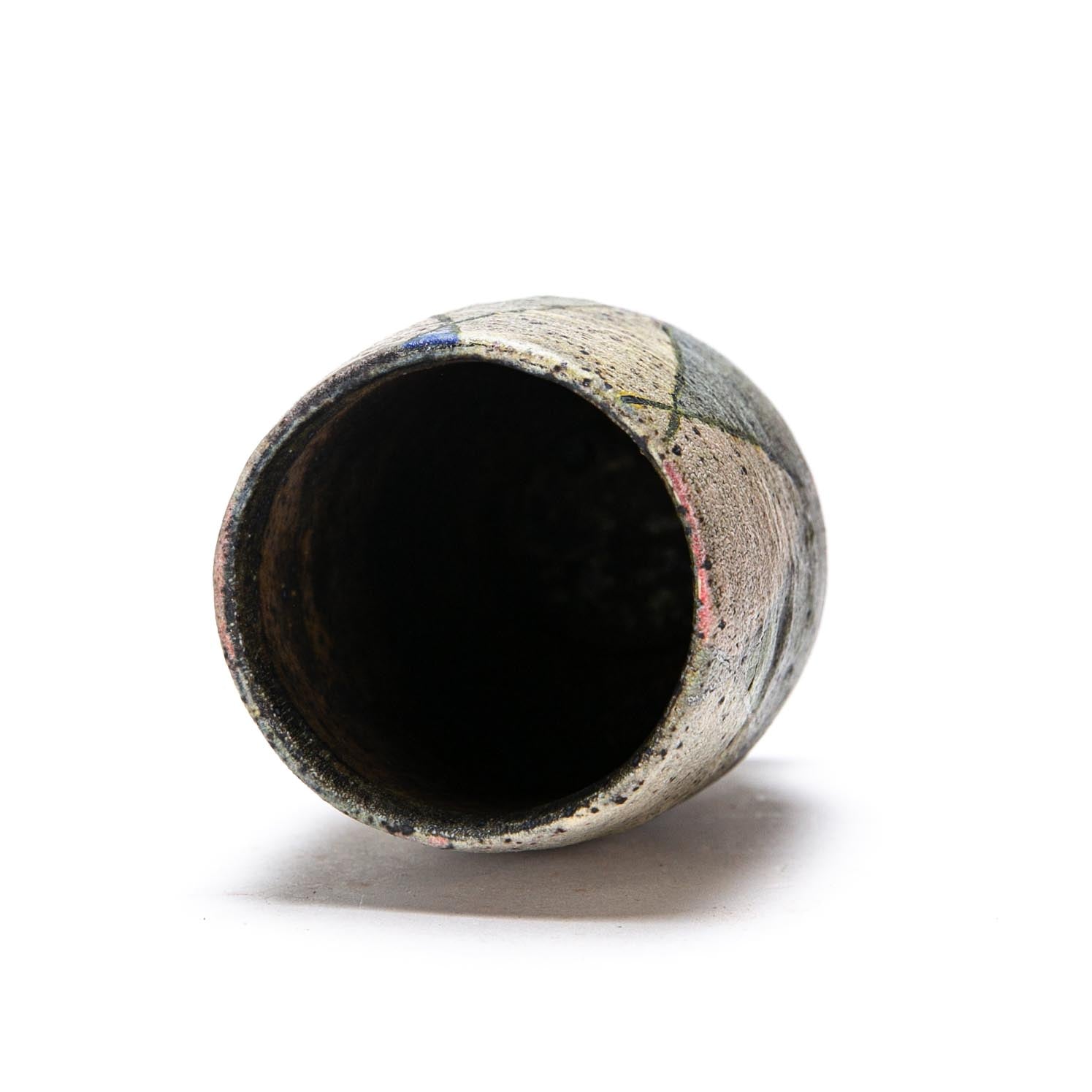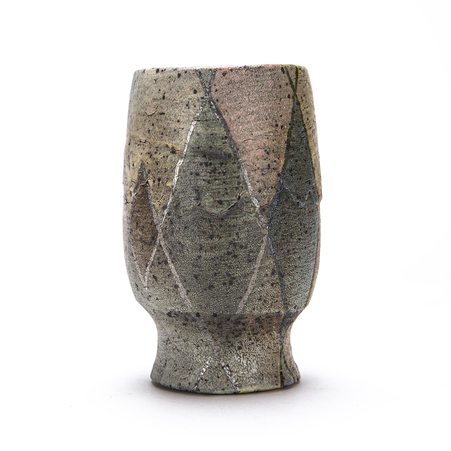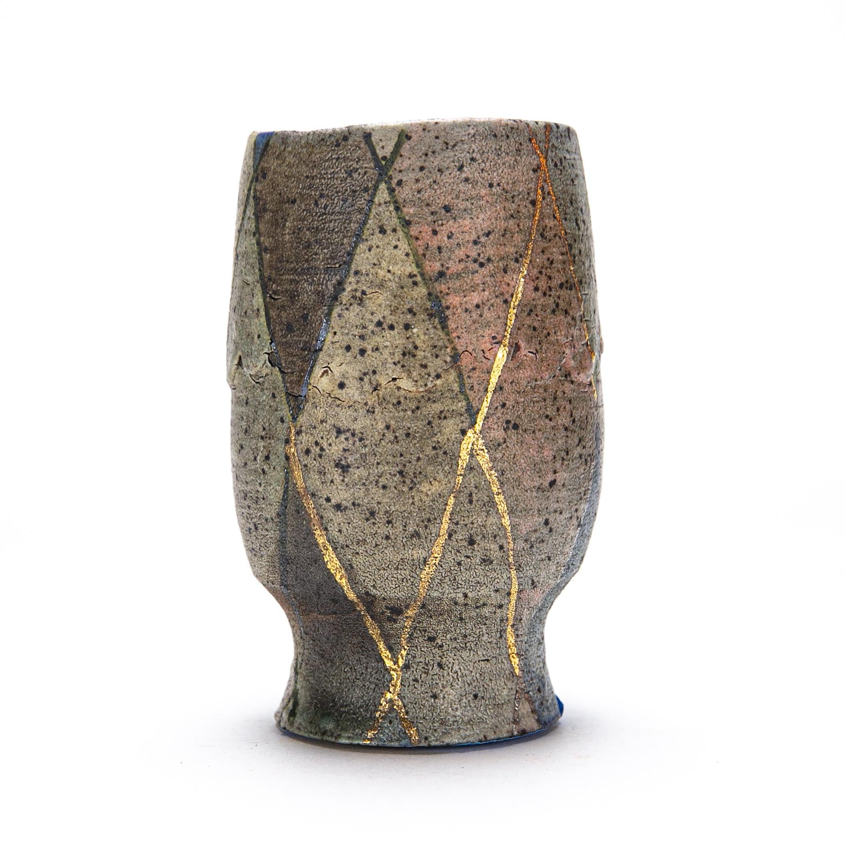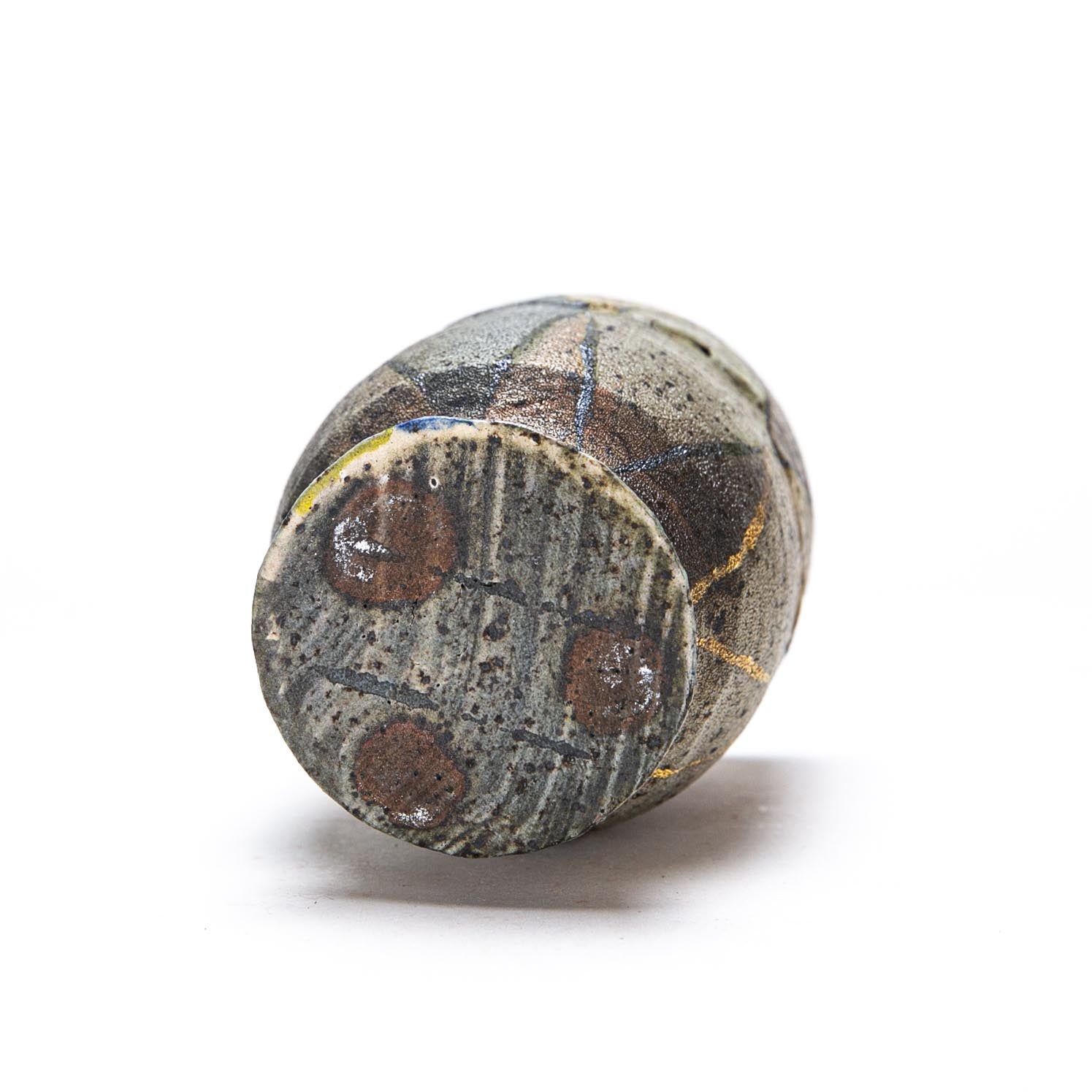 Speckled Stoneware with terra siggilata and luster line work. ^6 Wood/Soda Fired