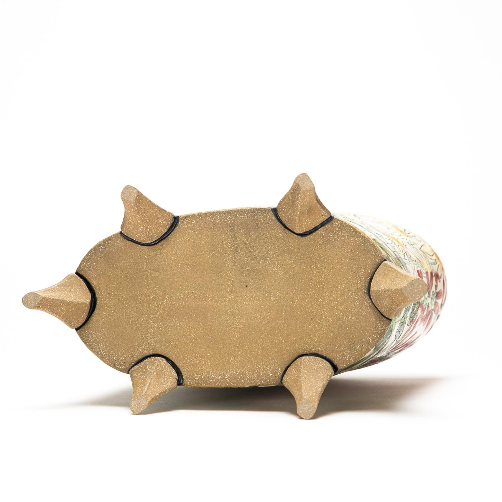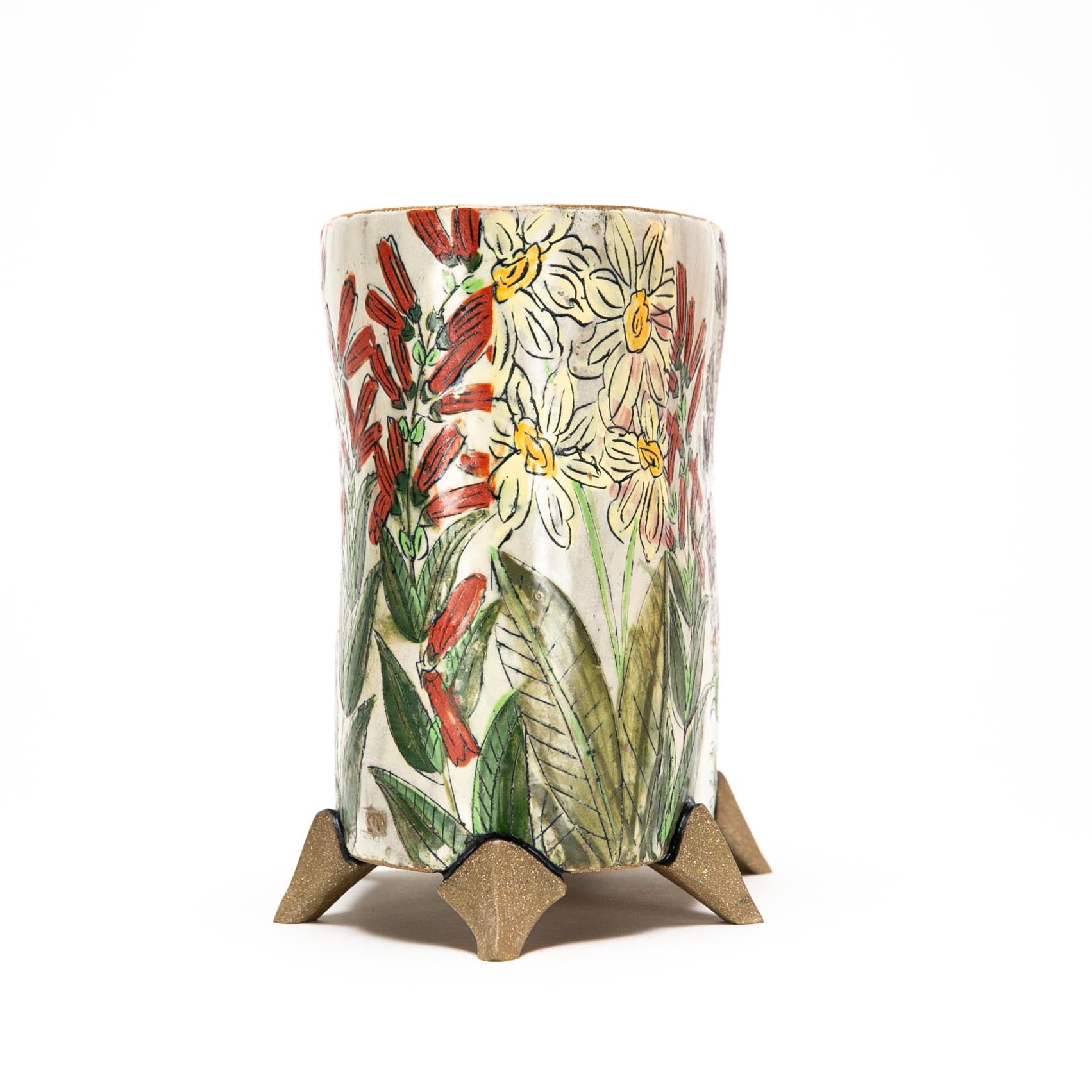 Stoneware. Porcelain slip, underglaze, newsprint transfer, inlay. ^6 Oxidation