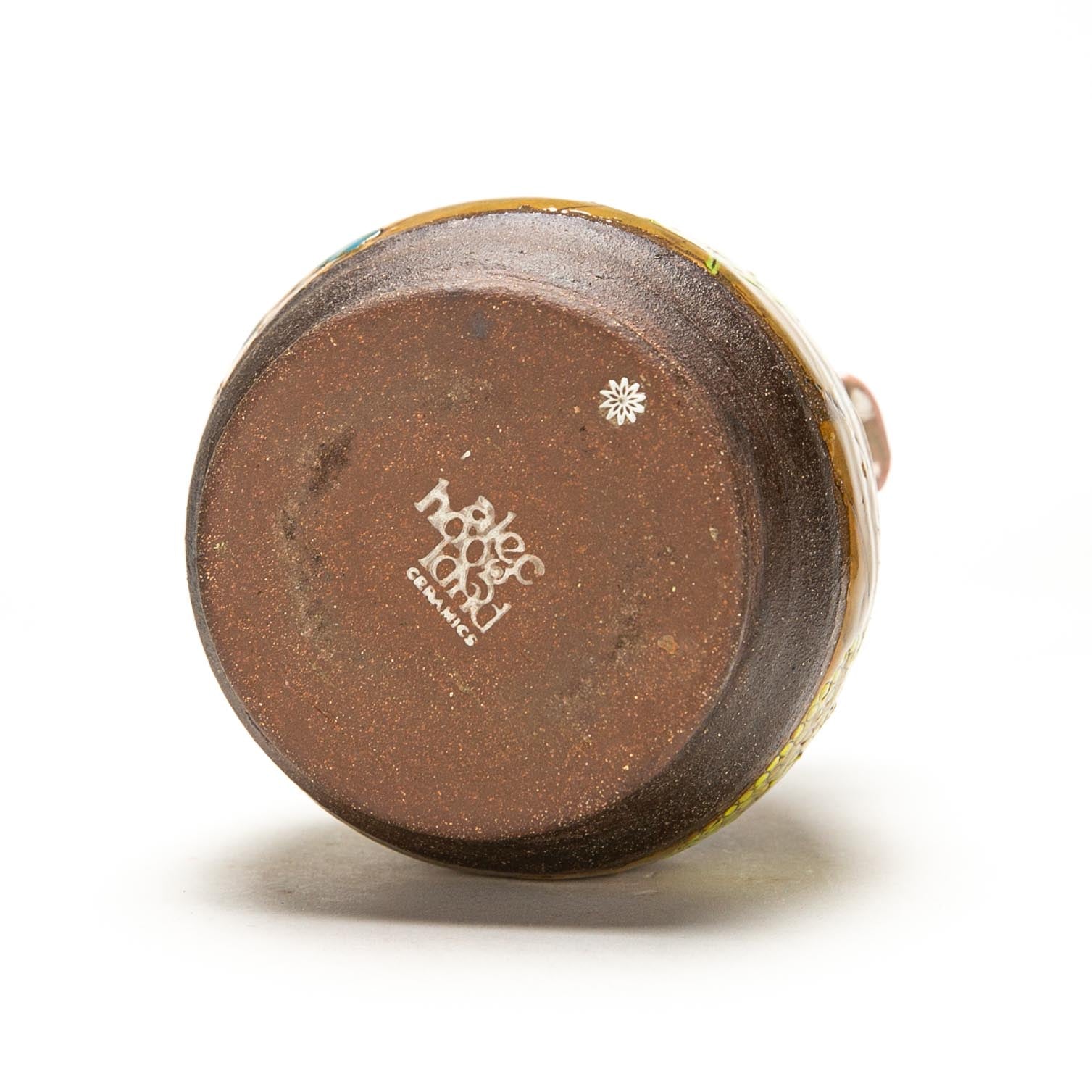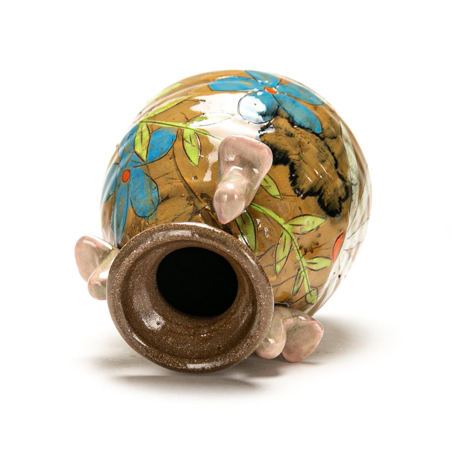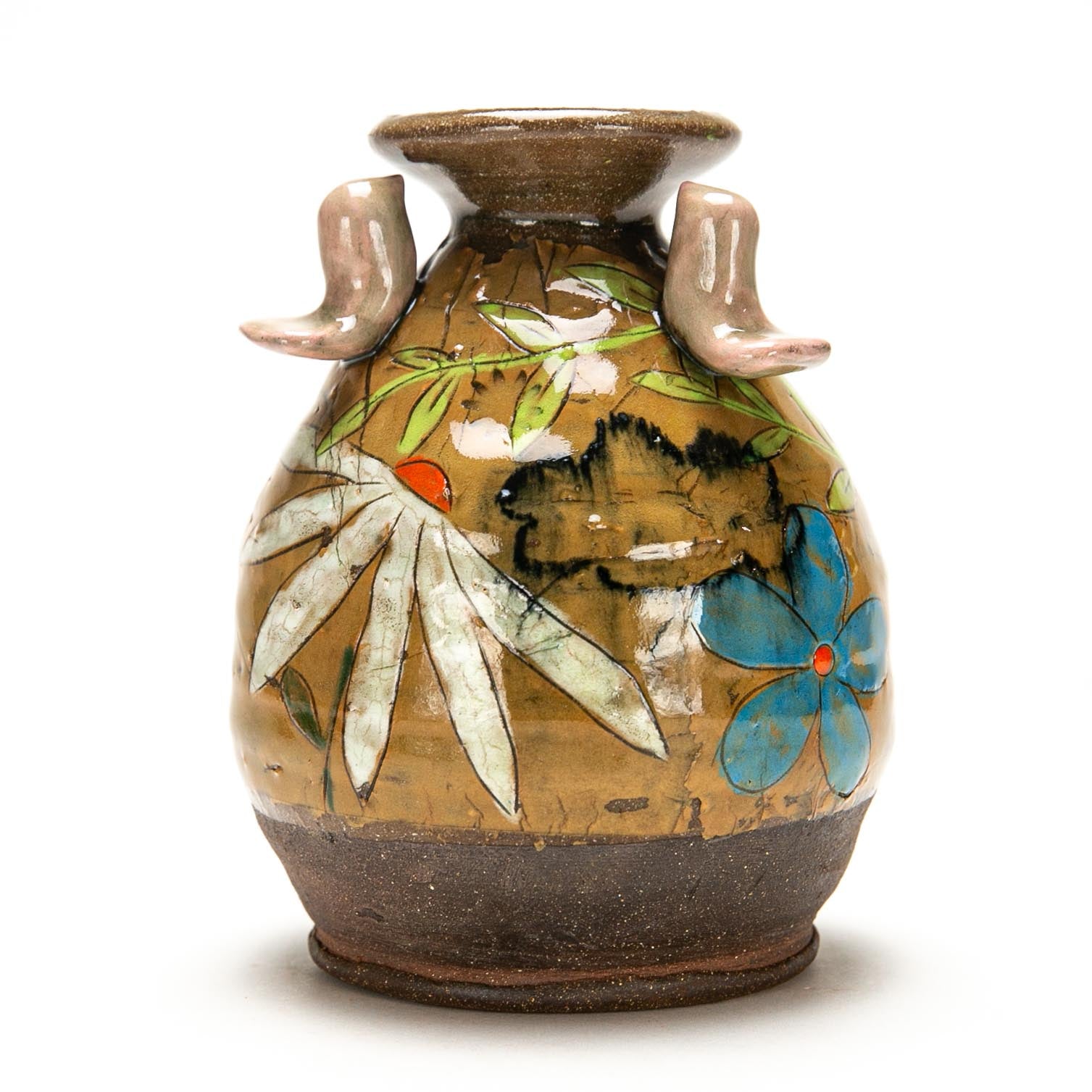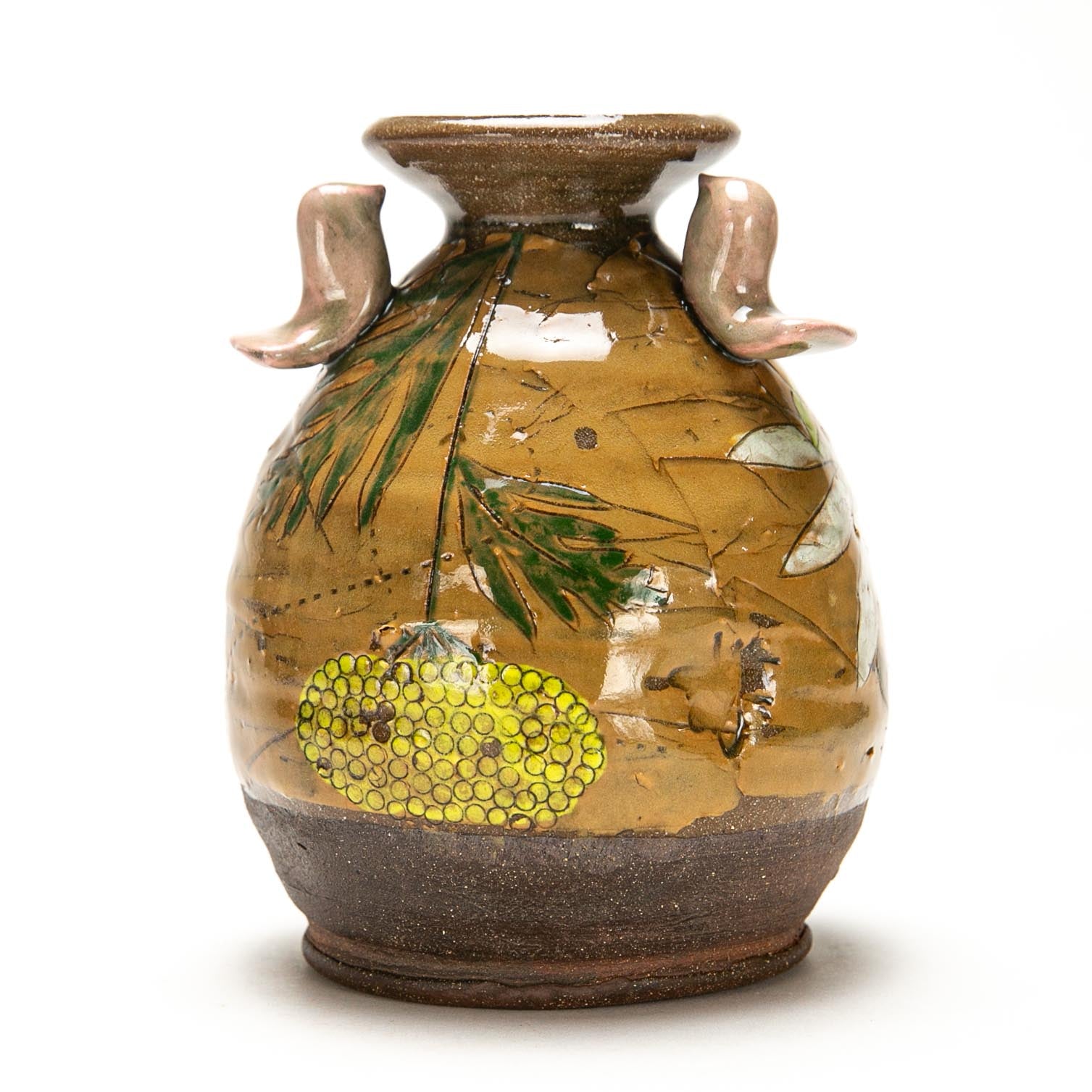 Red stoneware with slip and underglaze. ^5 Oxidation