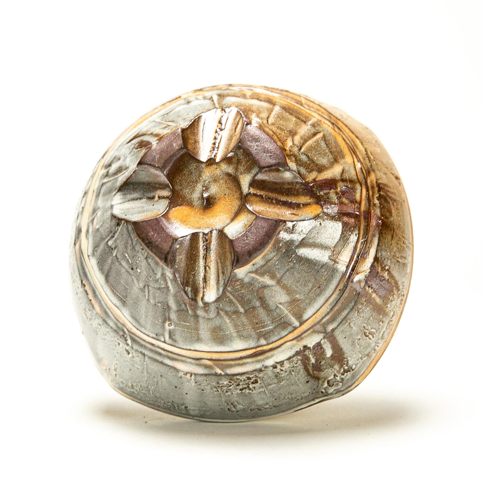 Soda fired earthenware with flashing slip. ^3 Soda Fired