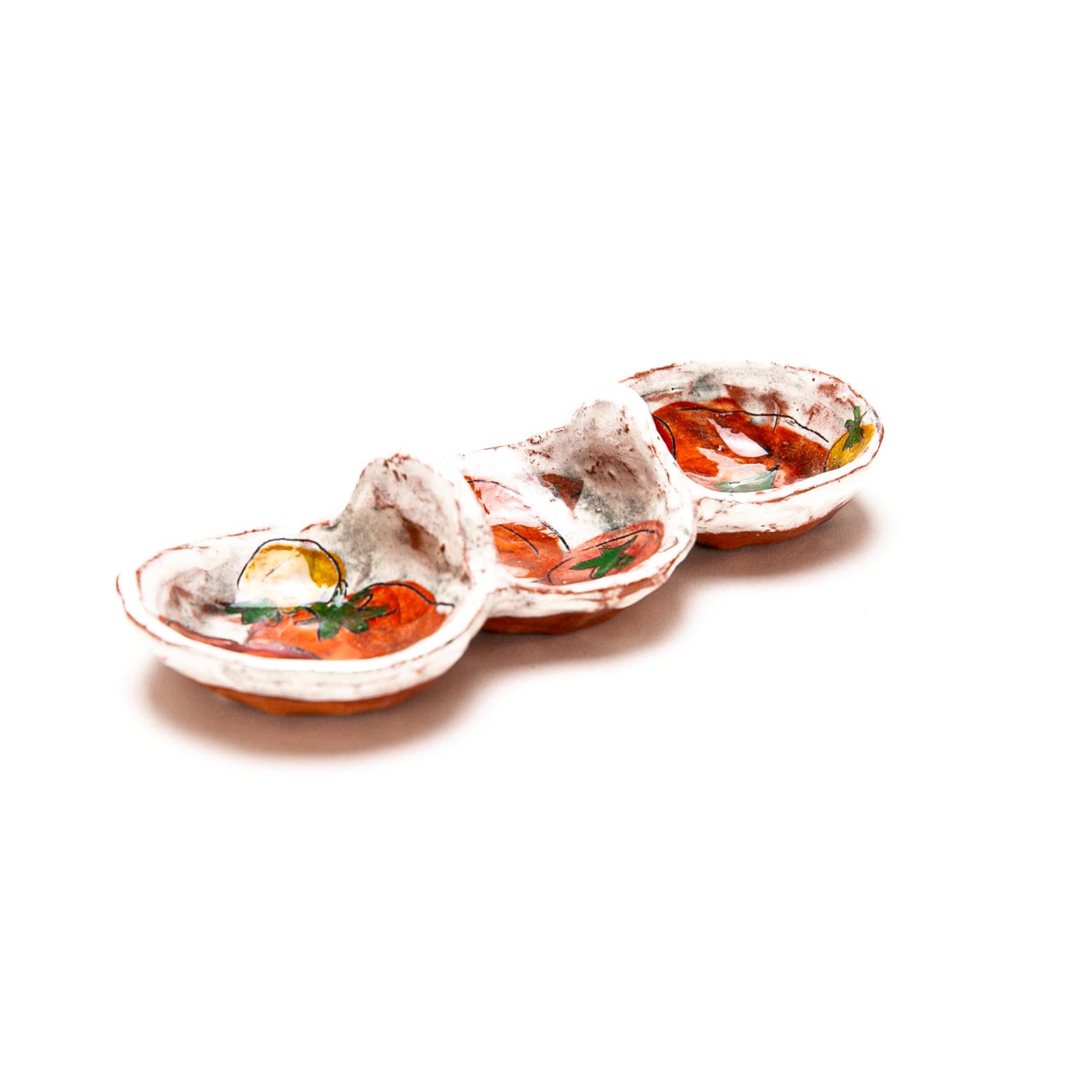 Earthenware with slip and underglaze. ^04 Oxidation
