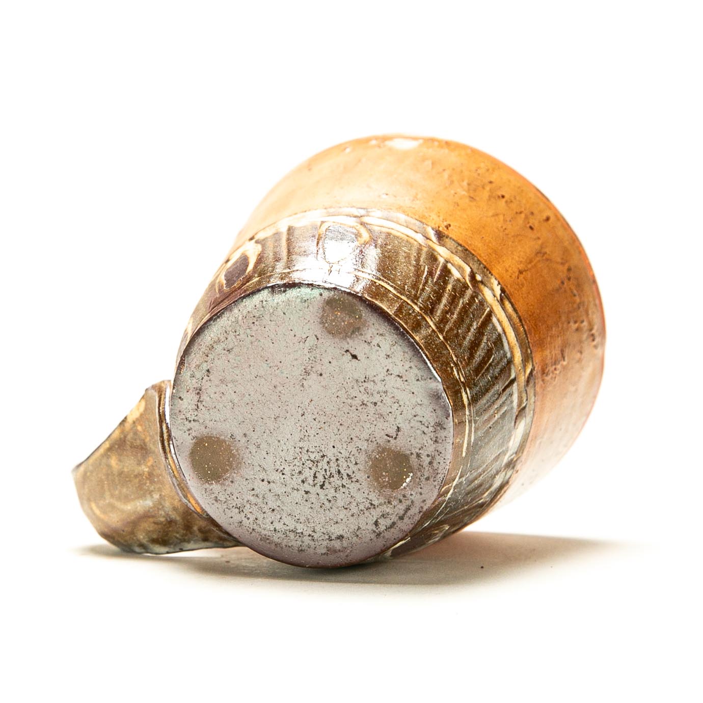 Soda fired earthenware with flashing slip. ^3 Soda Fired