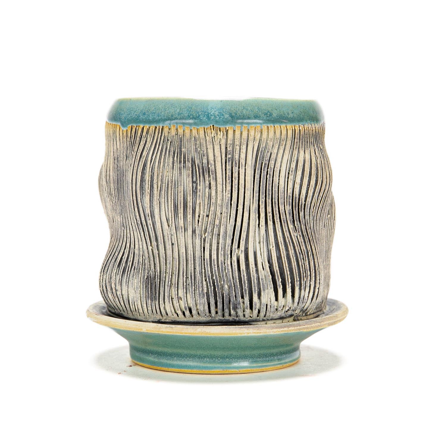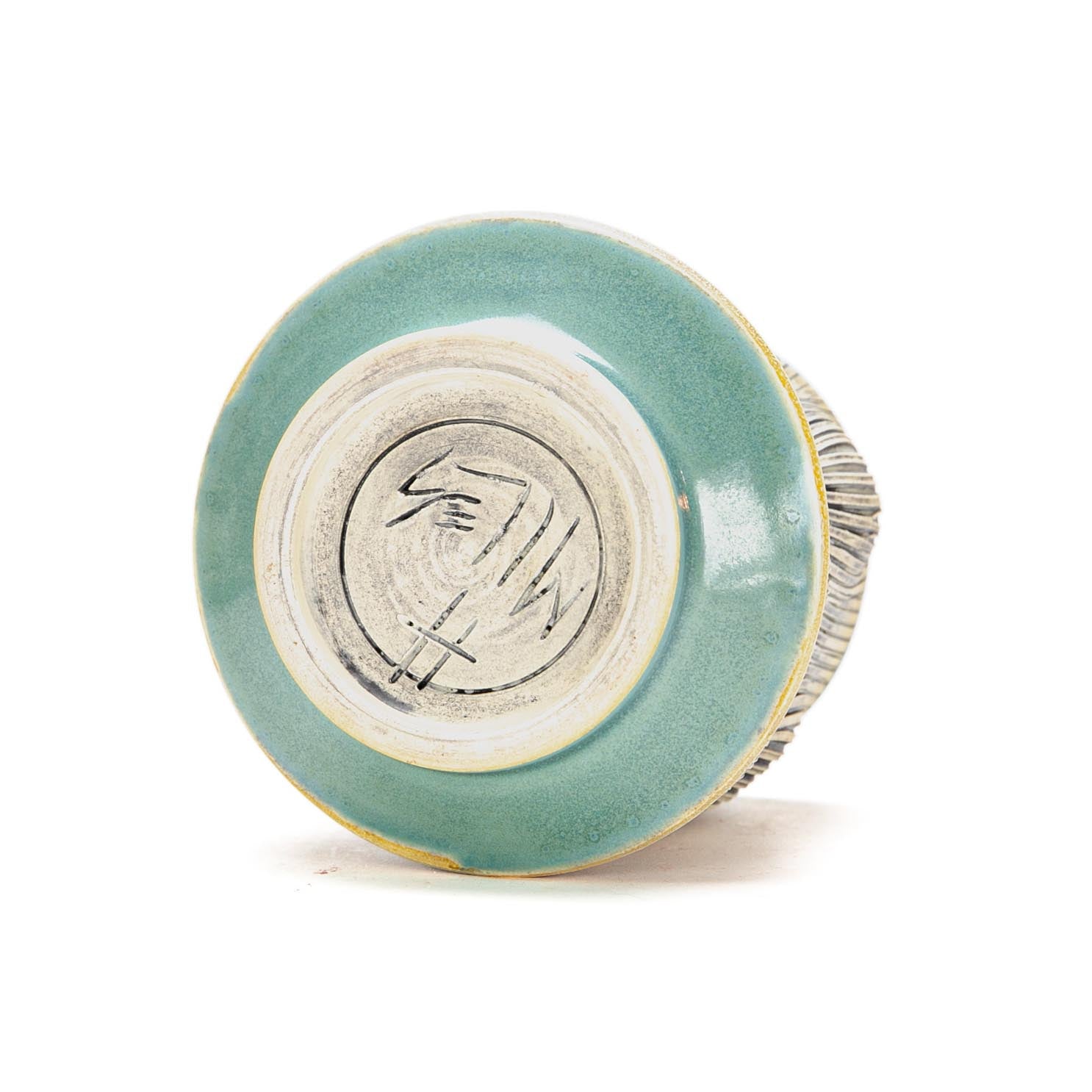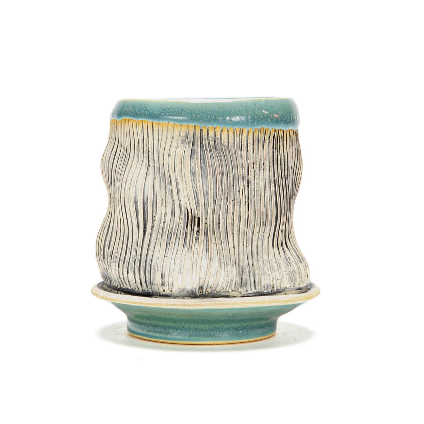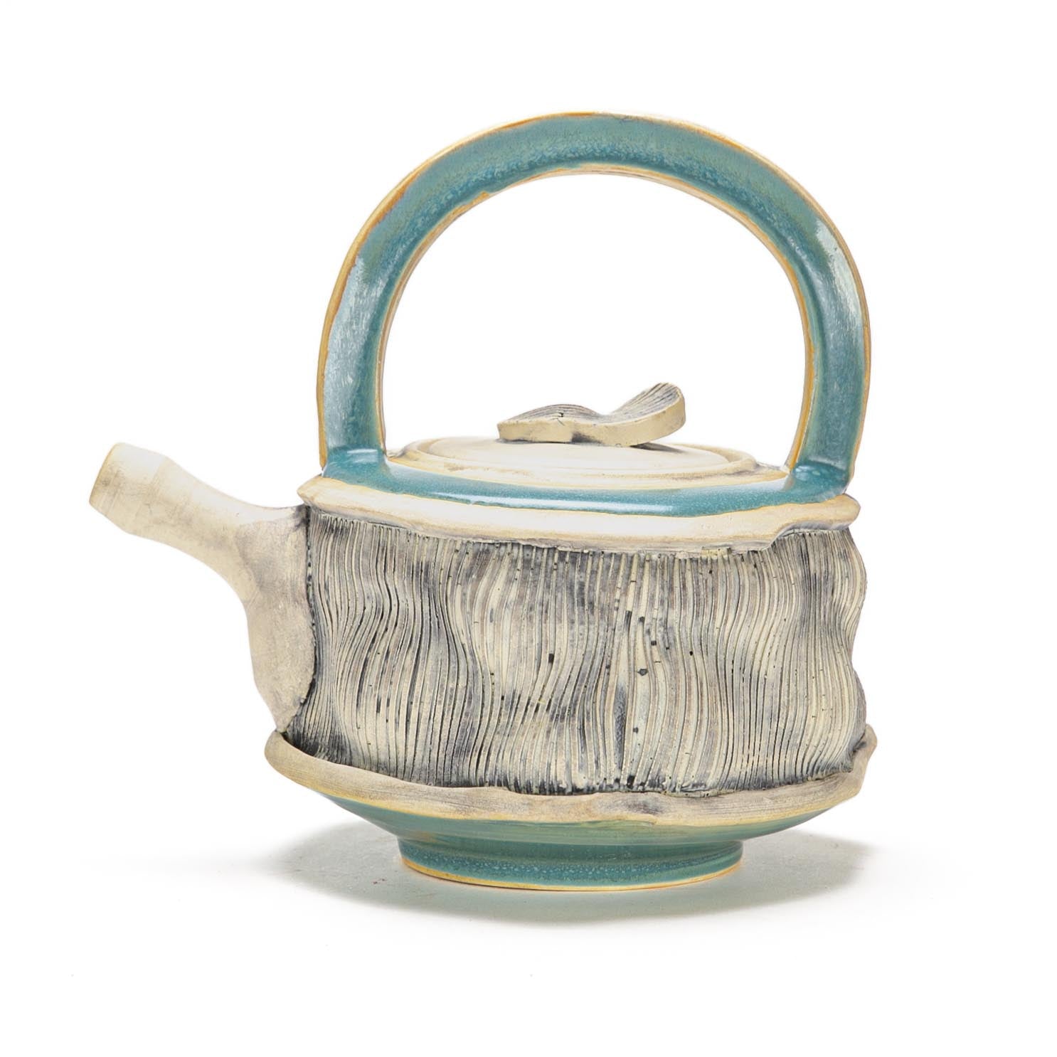 Porcelain with underglaze and glaze. ^6 Oxidation