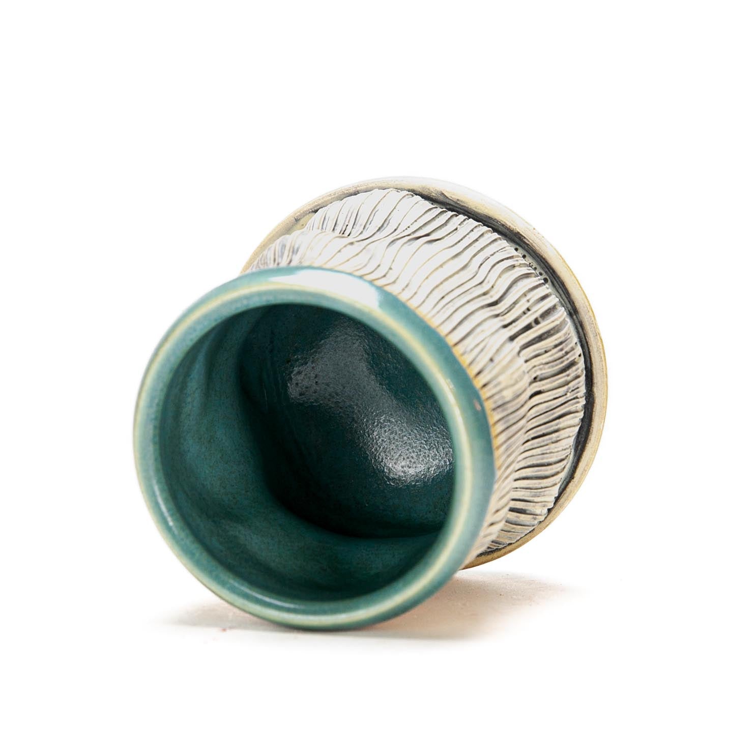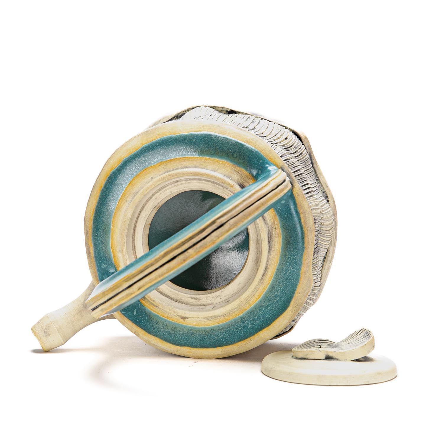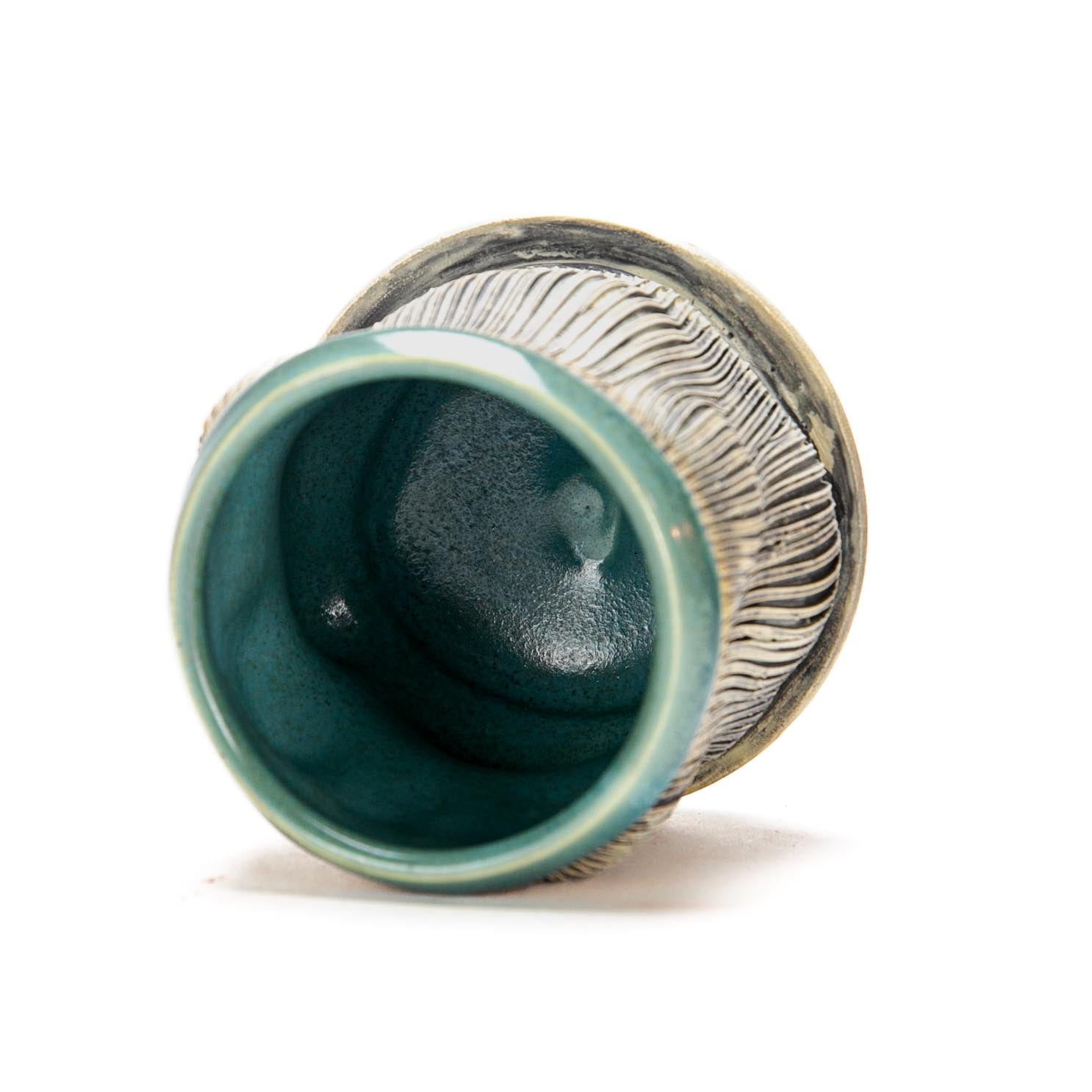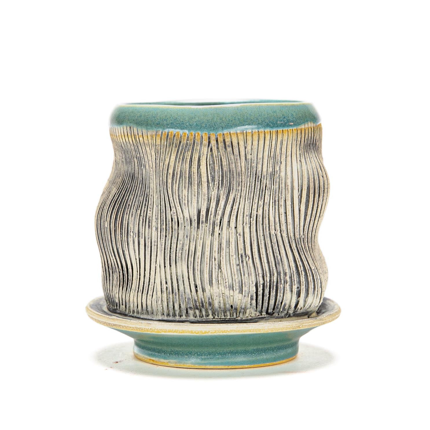 Porcelain with underglaze and glaze. ^6 Oxidation