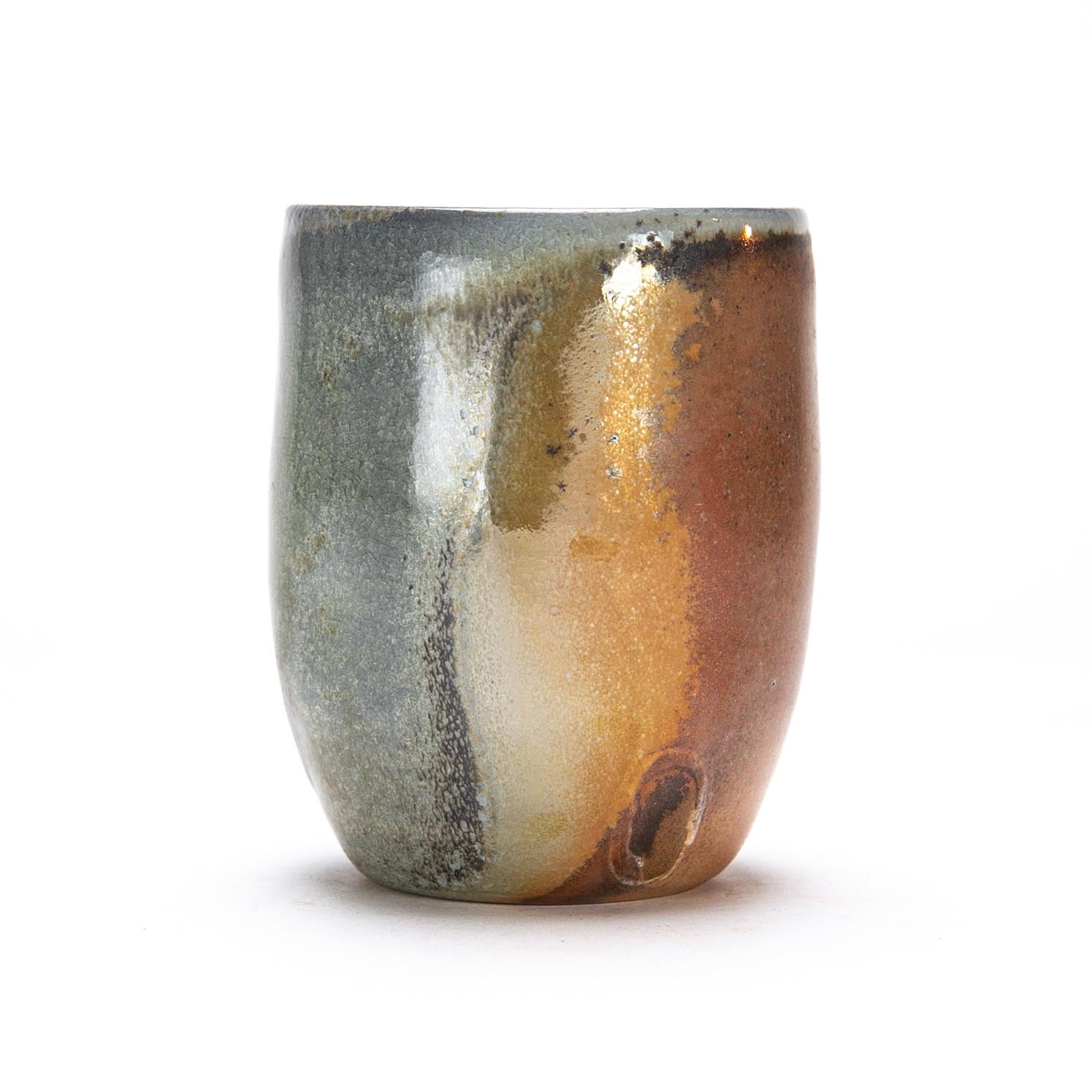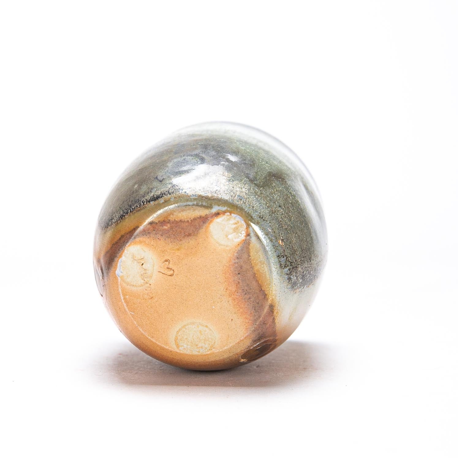 B-clay stoneware with shino slip. ^10 Wood Fired