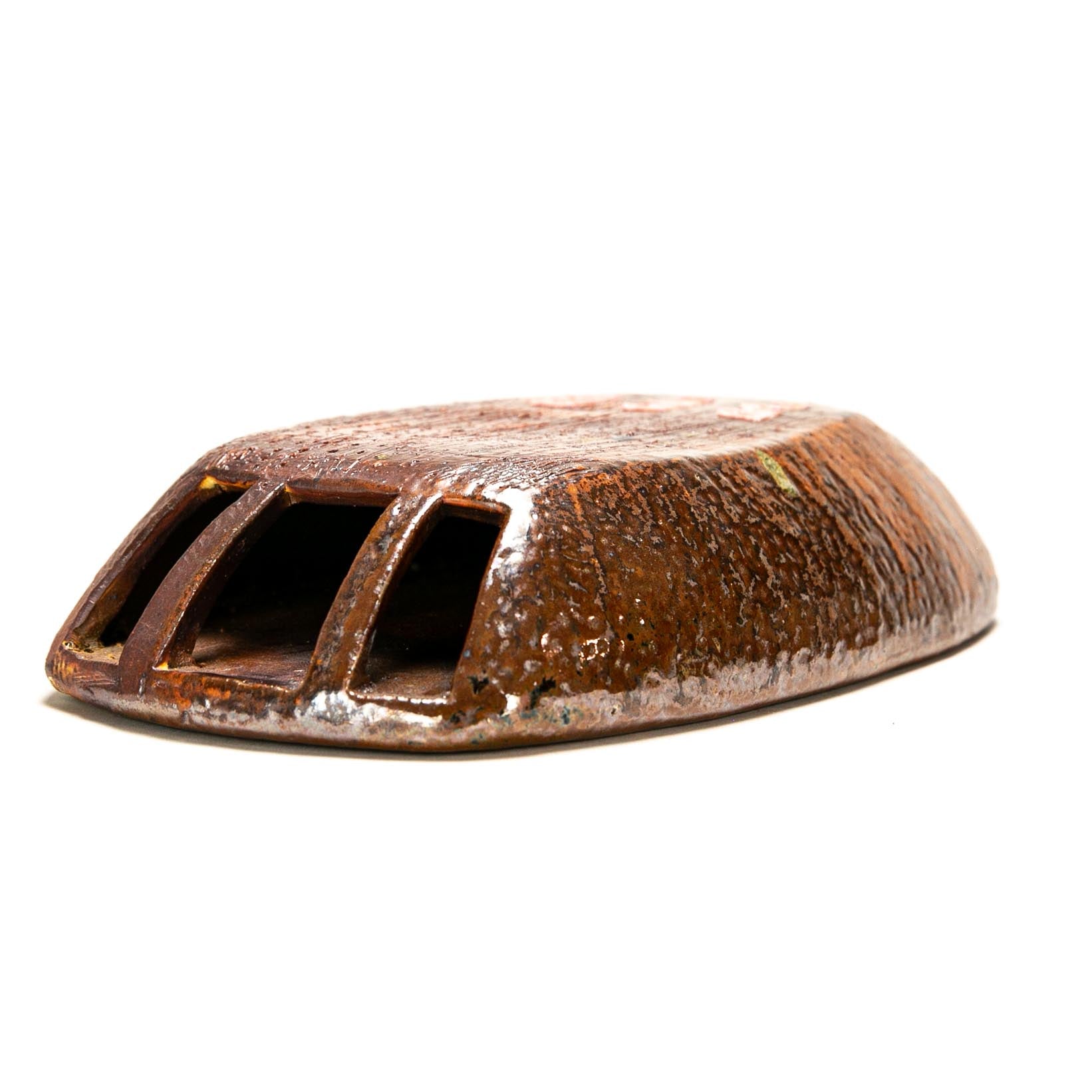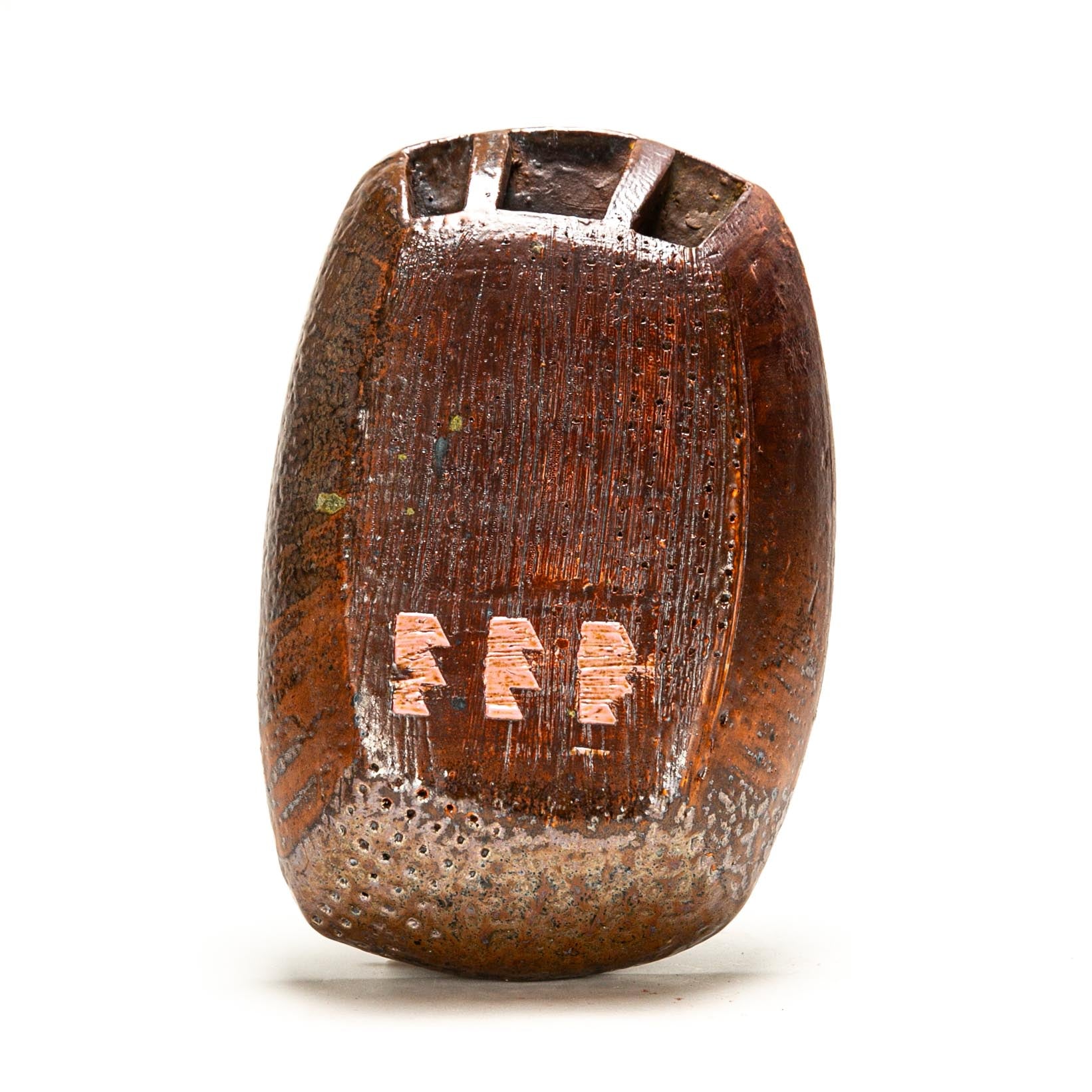 Stoneware with flashing slip. ^10 Soda Fired