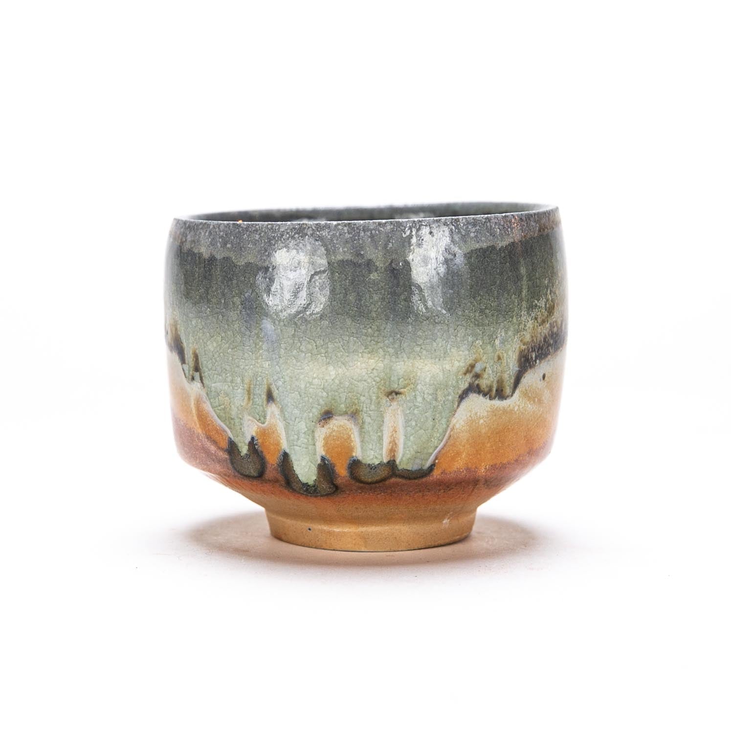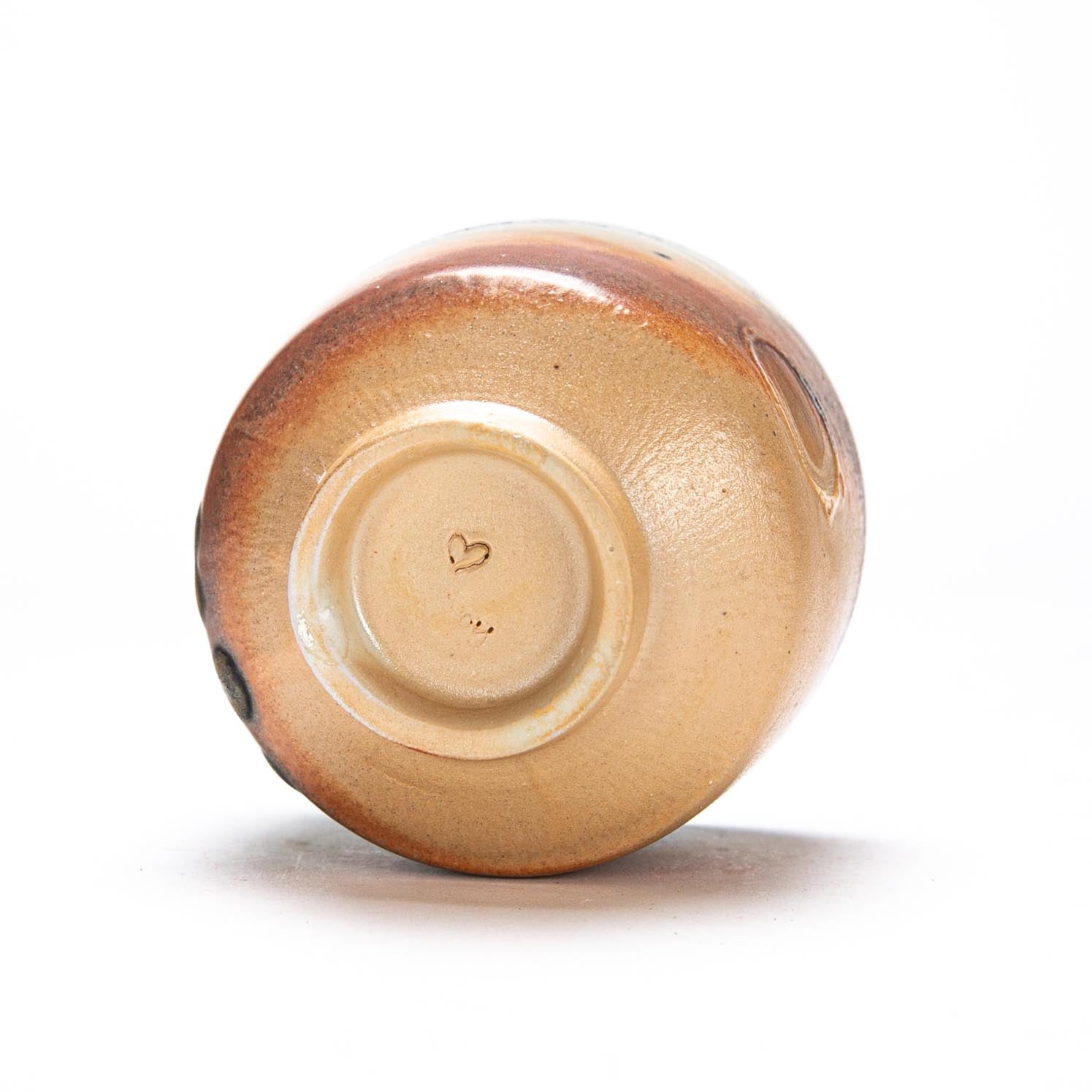 B-clay stoneware with shino slip. ^10 Wood Fired